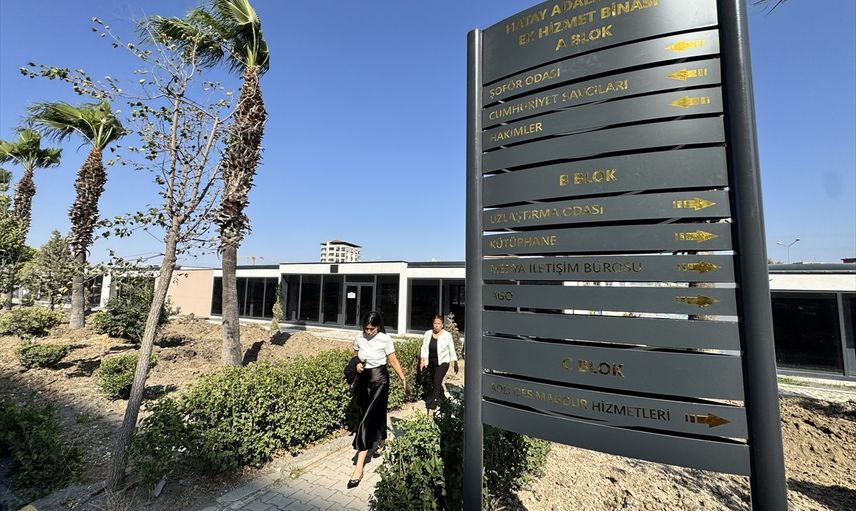 Hatay Adliyesi bahçesinde, 6 Şubat 2023'te meydana gelen depremler sonrasında inşa edilen çelik konstrüksiyon yapılı 19 odalı ek hizmet binasının açılışı gerçekleştirildi.