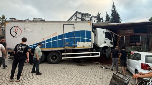 Hatay Belen'de freni arızalanan kamyon vidanjöre ve restorana çarptı: sürücü yaralandı