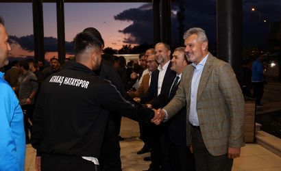 Hatay Büyükşehir Belediye Başkanı Mehmet Öntürk (sağda), Süper Lig ekiplerinden Atakaş Hatayspor'un kulüp yöneticileri, teknik heyet ve futbolcularını moral yemeğinde ağırladı.