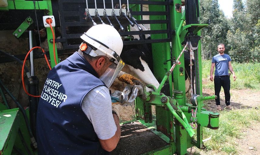 Hatay Büyükşehir Belediyesi ekipleri, besicilerin büyükbaşlarının tırnak bakımlarını ücretsiz yapıyor.