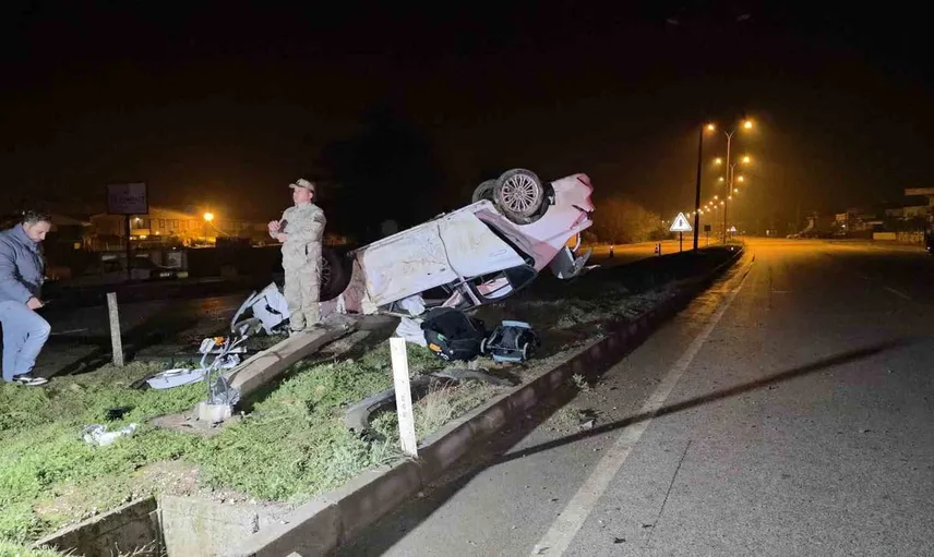 Çarpmanın etkisiyle araç ters dönerek durdu. Araçta bulunan sürücü, eşi ve 7 aylık bebekleri yaralandı. İhbar üzerine bölgeye sağlık, itfaiye ve polis ekipleri sevk edildi. İtfaiye ekipleri tarafından kurtarılan yaralılar, olay yerinde yapılan ilk müdahalenin ardından hastaneye kaldırıldı.