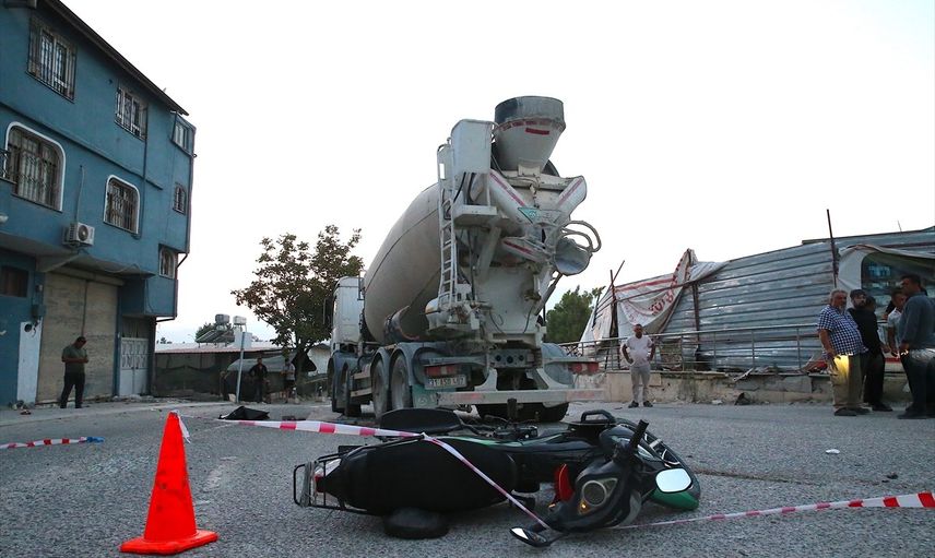Hatay'ın merkez Antakya ilçesinde beton mikseriyle çarpışan motosikletteki 1 kişi öldü, 1 kişi yaralandı.