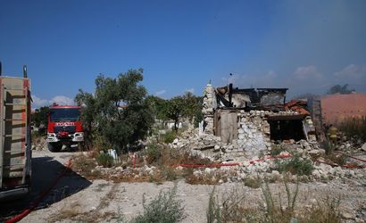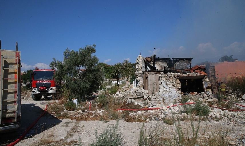 Hatay'ın merkez Antakya ilçesinde, 6 Şubat 2023'teki depremlerde ağır hasar alması nedeniyle boşaltılan 2 katlı binada çıkan yangın söndürüldü.