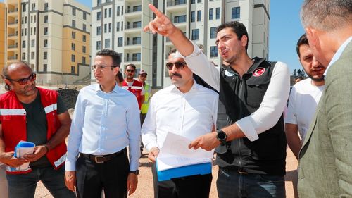 Hatay Valisi Masatlı, TOKİ'nin inşa ettiği deprem konutlarında incelemelerde bulundu.