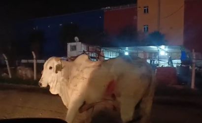 HATAY'DA 2 KİŞİNİN CAN VERDİĞİ KAZADA TIRDAN KAÇARAK ŞEHİR TURUNA ÇIKAN ANGUSLAR, EKİPLERİ TARAFINDAN UYUŞTURUCU İĞNEYLE SAKİNLEŞTİREREK TEK TEK YAKALANDILAR.