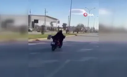 Hatay'ın Kırıkhan ilçesi çevreyolu Yeni Mezarlık mevkiinde motosikleti üzerine yatarak kullanan M.K. adlı kişi, akrobasi hareketlerini sosyal medyada paylaştı. Görüntüler kısa sürede polis ekiplerince tespit edildi.