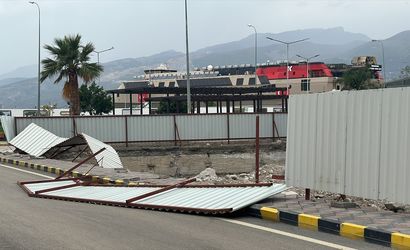 Hatay'ın İskenderun ve Dörtyol ilçelerinde fırtına nedeniyle bazı binaların çatısı uçtu, bir binadaki güneş enerjisi paneli devrildi.