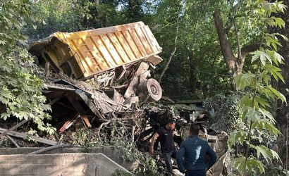 Hatay'ın Defne ilçesinde freni arızalanan hafriyat kamyonunun uçuruma devrilmesi sonucu 1 kişi öldü, 1 kişi yaralandı.