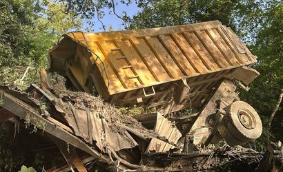 Hatay'ın Defne ilçesinde freni arızalanan hafriyat kamyonunun uçuruma devrilmesi sonucu 1 kişi öldü, 1 kişi yaralandı.
