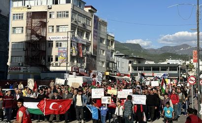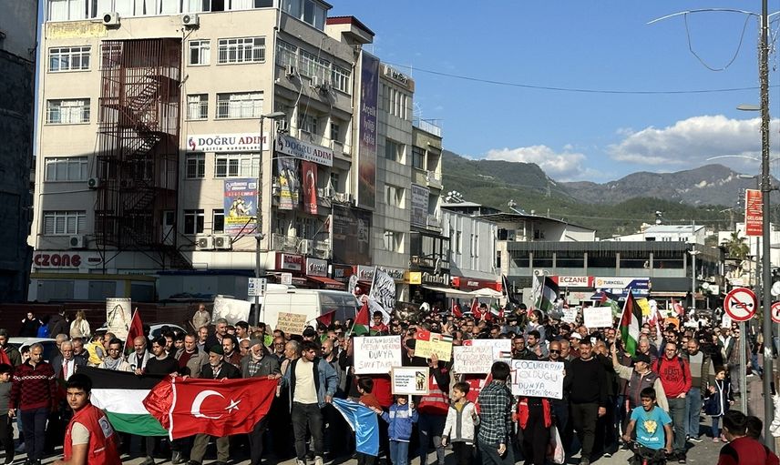 Hatay'ın Dörtyol ilçesinde, İsrail'in Gazze'ye saldırılarını protesto etmek için yürüyüş düzenlendi.