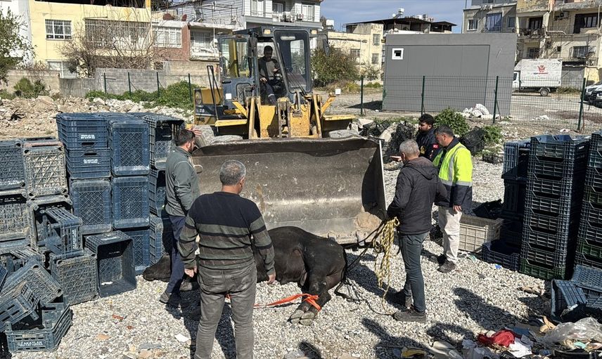 Hatay'ın İskenderun ilçesinde limandaki gemiden indirilirken kaçan angus, bir kişiyi yaraladıktan sonra uyuşturucu iğneyle sakinleştirilerek yakalandı.