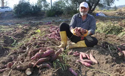 "Tatlı patates üretiyoruz. Hasat normal ama mevsimsel kuraklık nedeniyle verimde düşüşler var. Kuraklık çok etkiledi, verim yarı yarıya düştü. Tatlı patatesi Temmuz ayında ekiyoruz. Ekim ve Kasım aylarında hasat için söküm yapıyoruz. Tatlı patatesin çok çeşidi var. Farklı renklerde olan tatlı patates çeşitleri var. Söküm yapacak işçi bulamadığımız için sökümü iş makinesi yapıyor. Tatlı patates tarladan 30 ila 35 TL arasında iken manavlarda ise 50 ila 70 TL civarında satılıyor. Tatlı patates, tadı ve vitamin bolluğuyla diğer patatesten farklı oluyor. Tatlı patatesi biz kaynatarak, pişirerek veya tatlısını yapıyoruz. Tatlı patates şehir dışlarına gidiyor. Faydası çok kuvvetli ve tam bir şifa deposu bir patatesti".