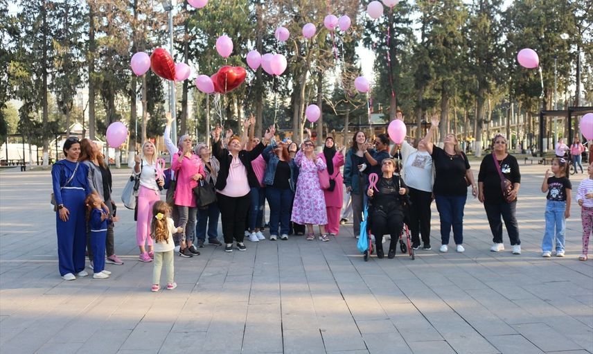 Hatay'da meme kanserini yenen Hatice Eryaşar için pembe balonlarla farkındalık etkinliği