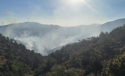 Hatay'ın Antakya ilçesinde ormanlık alanda çıkan yangın, havadan ve karadan müdahaleyle kontrol altına alınmaya çalışılıyor.