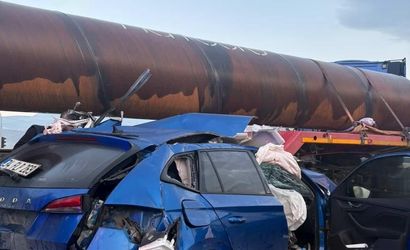 HATAY’DA SEYİR HALİNDE OLAN OTOMOBİL, DEMİR BORU YÜKLÜ TIRLA ÇARPIŞTI. OTOMOBİLİN HURDAYA ÇIKTIĞI KAZADA 2 KİŞİ YARALANDI.