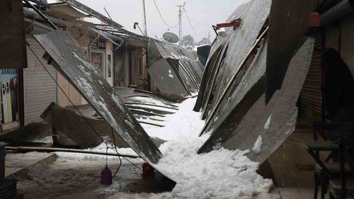 Hatay'da prefabrik çarşı çatısı kar yükünü taşıyamayıp çöktü