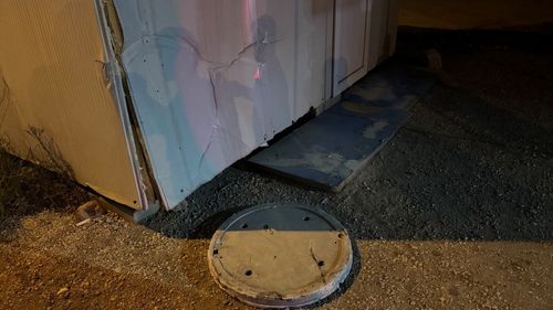 Antakya'da kamyonun geçtiği sırada yerinden çıkan rögar kapağı, iş yeri ve motosiklete zarar verdi. Olay güvenlik kameralarına yansıdı.