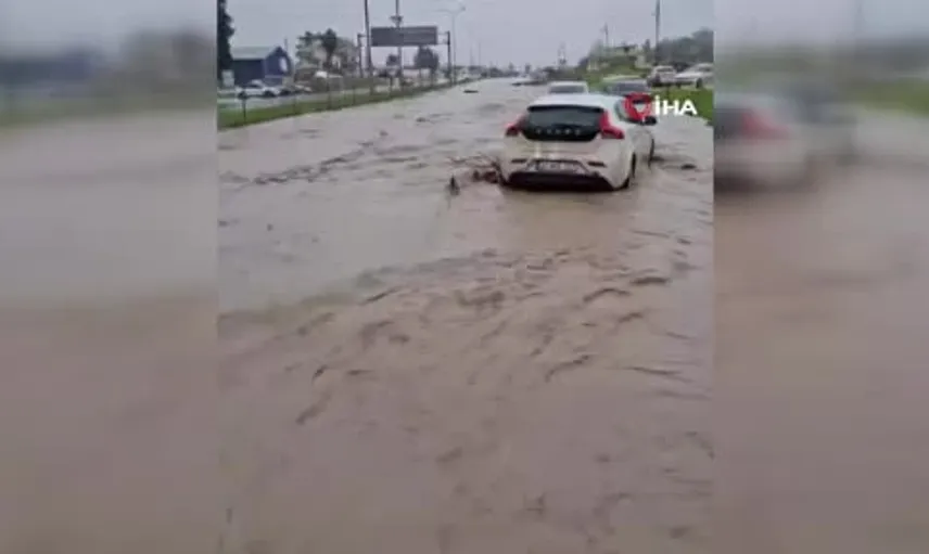 Meteorolojinin şiddetli yağış uyarısının ardından Hatay’da gece başlamasıyla birlikte sabah saatlerinde yolların göle dönmesi ve sel oluşması görüldü. Antakya ilçesi Güzelburç Mahallesi’nde sel nedeniyle göle dönen yolda ilerleyemeyen bir okul servisi mahsur kaldı.