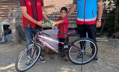 Hatay'ın merkez Antakya ilçesinde su satarak bisiklet parası biriktiren 9 yaşındaki Cesur Özkurt'un bisiklet hayali gerçekleşti.