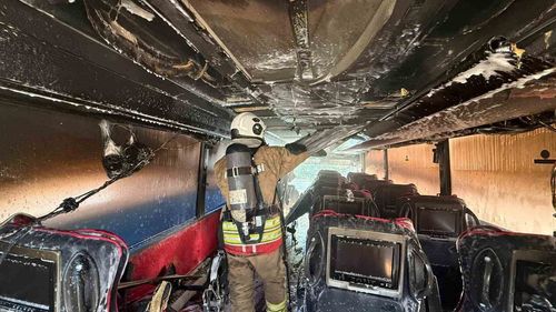 Hatay Antakya'da tamir atölyesinde park halindeki Mercedes marka Vanyolu Seyahat otobüsü yanarak kullanılamaz hale geldi; itfaiye yangını kontrol altına aldı.