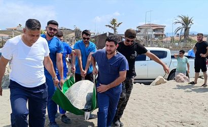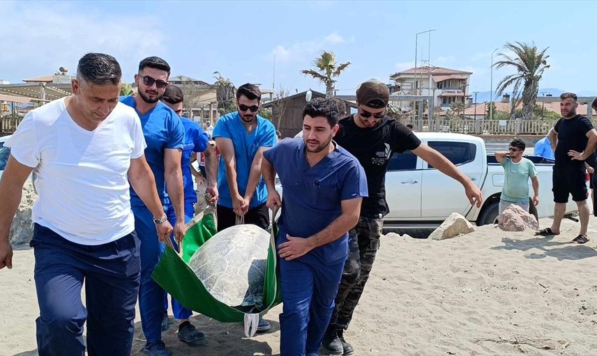 Hatay'ın Samandağ ilçesinde, tedavi süreçleri tamamlanan 4 yeşil deniz kaplumbağası ve 1 caretta caretta, Deniz Mahallesi sahilinde doğal yaşam alanlarına bırakıldı.