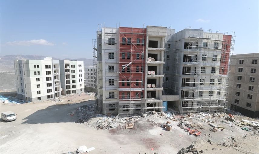 Hatay'ın Defne ilçesinde, 6 Şubat 2023'teki depremlerin ardından yapımına başlanan 3 bin 722 afet konutu ve 7 ticaret merkezinin inşası devam ediyor.