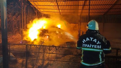 Hatay'ın Defne ilçesi Hancağız Mahallesi'ndeki ahır samanlığında çıkan yangın, itfaiyenin müdahalesiyle yerleşimlere sıçramadan kontrol altına alındı.