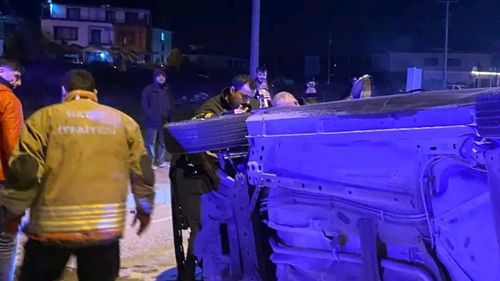 Hatay Defne Çekmece Mahallesi'nde vidanjöre çarpan otomobil takla attı; sürücü Z.Z. hafif yaralandı, ekipler müdahale etti.