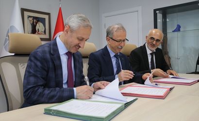 Hatay Engelli Sosyal Girişimcilik Merkezinde Hatay Valiliği, Hatay Mustafa Kemal Üniversitesi (HMKÜ), Fiziksel Engelliler Vakfı ile İstanbul Medeniyet Üniversitesi (İMÜ) arasında eğitim protokolü imzalandı. İmza törenine HMKÜ Rektörü Prof. Dr. Veysel Eren (solda), Fiziksel Engelliler Vakfı Yönetim Kurulu Başkanı Prof. Dr. Yaşar Tatar (sağda) ve İMÜ Rektörü Prof. Dr. Gülfettin Çelik (ortada) katıldı.