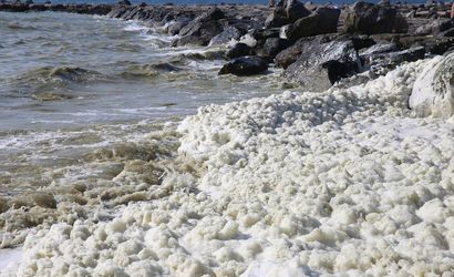 Hatay'ın Arsuz ilçesinde, deniz kıyısındaki bazı bölgelerde köpük benzeri tabaka oluştu.