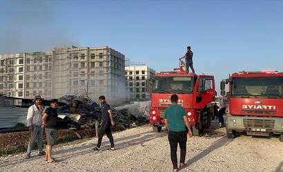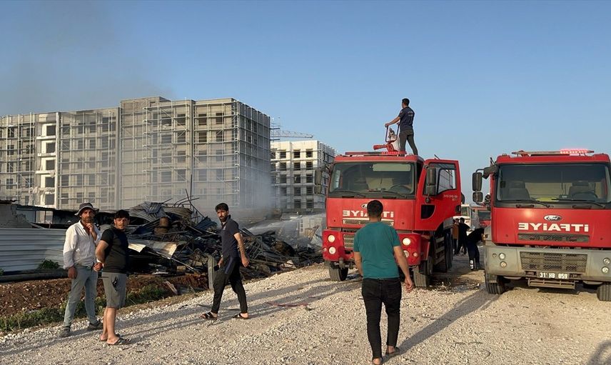 Hatay'ın Kırıkhan ilçesinde, inşaat şantiyesindeki konteyner depoda çıkan yangın söndürüldü.