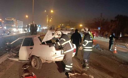 Hatay Kırıkhan'da tırla çarpışan Tofaş ikiye bölündü: Sürücü yaralandı