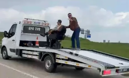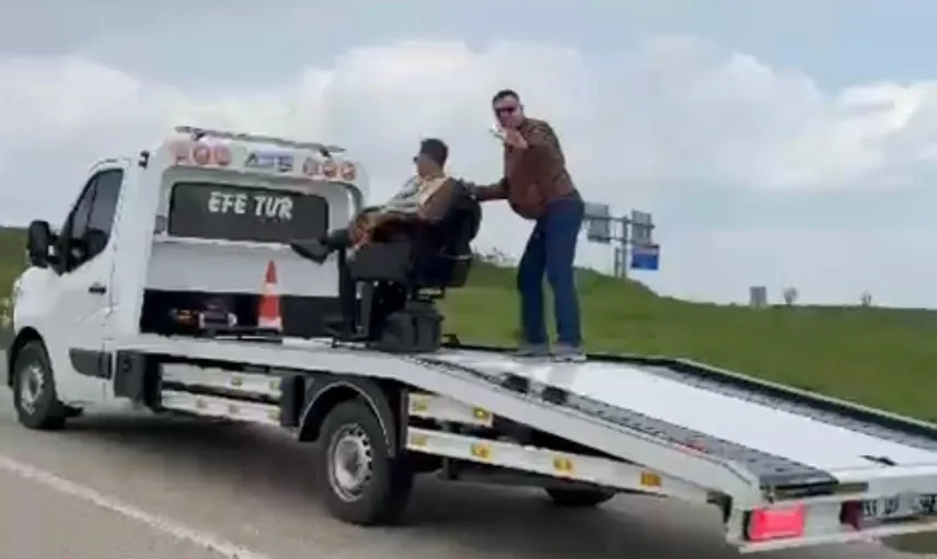 Çekici üzerinde tıraş görüntüleri vatandaşların ilgisini çekti