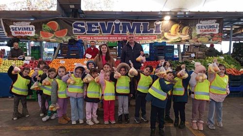Hayriye-Hayrullah Saki Anaokulu’ndan yaklaşık 100 öğrenci, 12-18 Aralık Tutum, Yatırım ve Türk Malları Haftası kapsamında Çaycuma pazarını ziyaret ederek yerli üretimi anlattı.