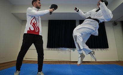 Romanya'daki 24. Balkan Tekvando Şampiyonası kadınlar 57 kiloda altın madalya kazanan Hayrunnisa İzmir (sağda), Avrupa ve Dünya şampiyonalarında başarısını sürdürmeyi hedefliyor. Hayrunnisa İzmir, Dokuz Eylül Üniversitesi (DEÜ) Necat Hepkon Spor Bilimleri Fakültesi'nin spor salonunda antrenmanlarını sürdürdü.