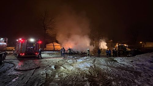 Sakarya'nın Hendek ilçesi Yenimahalle Mezbahane önünde park halindeki 54 K 1559 plakalı saman yüklü kamyonda yangın çıktı; uyuyan sürücü A.G. vatandaşlarca araçtan çıkarıldı.