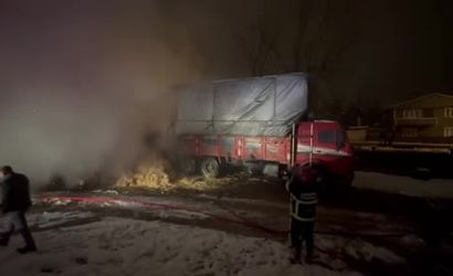 Saman yüklü kamyon alev aldı, uyuyan sürücü facianın eşiğinden döndü
