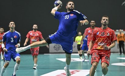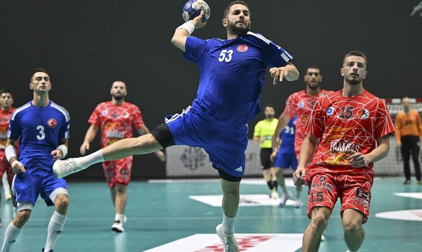 Hentbolda EHF Erkekler Avrupa Kupası 1. tur rövanş maçında DEPSAŞ Enerji As, Kosova'nın KH Besa Famgas takımıyla Prof. Dr. Yaşar Sevim Hentbol Salonu'nda karşılaştı. Bir pozisyonda DEPSAŞ Enerji As oyuncusu Daniel Bello (99) rakibiyle mücadele etti.