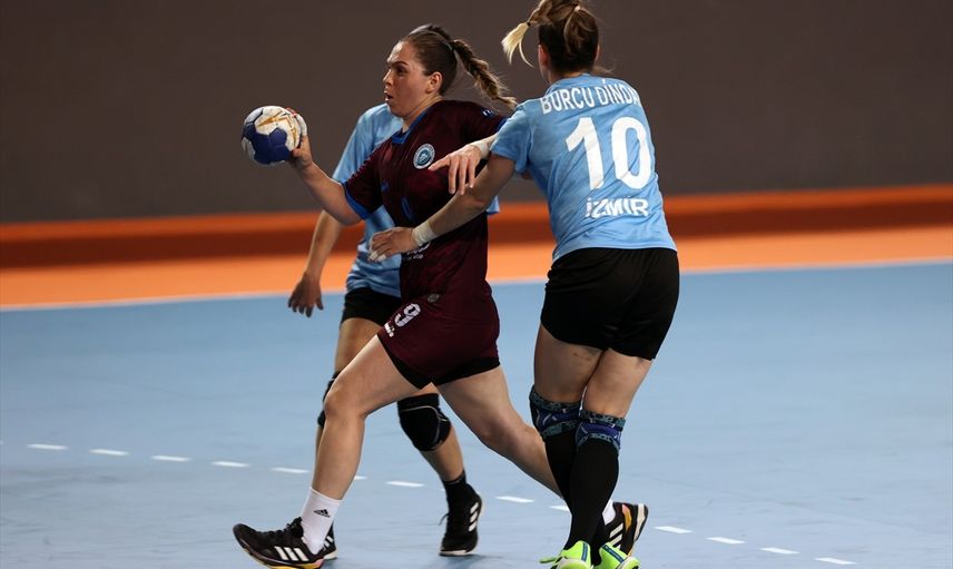 Hentbol Kadınlar Süper Lig'in 15. haftasında Ortahisar Belediyespor, İzmir Büyükşehir Belediyespor ile Beşirli Spor Salonu'nda karşılaştı. Bir pozisyonda oyuncular topu kazanmak için mücadele etti.