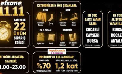 Hepsiburada, bu yıl da 11.11 kampanyasında yüksek ilgiyle karşılaştı. 11 Kasım günü platformun ziyaret sayısı geçen yıla göre yüzde 10 artarken, kampanya boyunca saniyede 22 ürün satıldı. En yoğun alışverişin gerçekleştiği saatler 21.00-23.00 aralığı oldu.