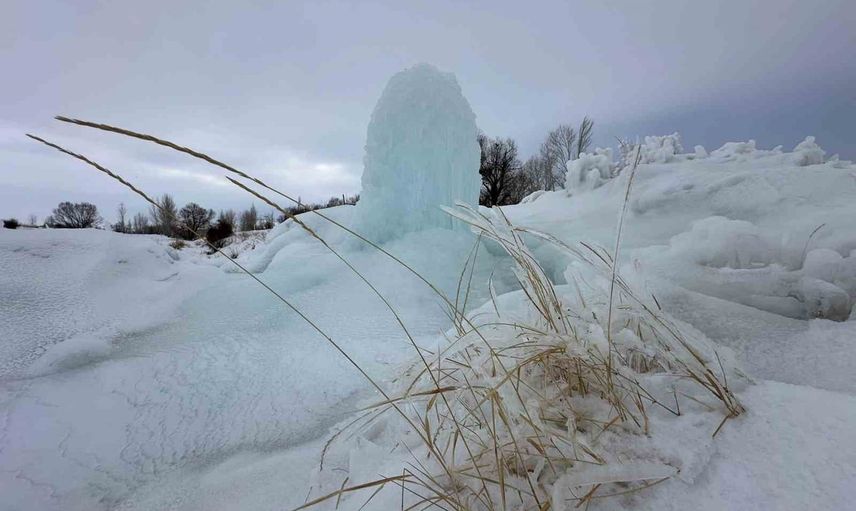 Hınıs Parmaksız Mahallesi'nde yaklaşık 4 metrelik doğal buz kütlesi oluştu