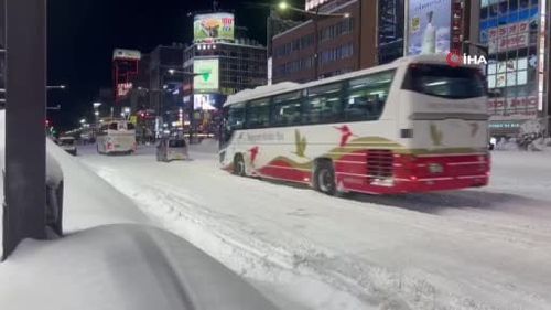 Hokkaido'da şiddetli kar nedeniyle en az 56 uçuş ve yaklaşık 500 tren seferi iptal edildi; New Chitose Havalimanı'nda 7 bin yolcu geceyi geçirdi, 130 bin kişi etkilendi.