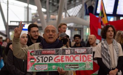 Hollanda'da Utrecht, Amsterdam ve Rotterdam başta olmak üzere farklı kentlerdeki toplam 20 tren istasyonunda, Filistin'e destek için oturma eylemi düzenlendi. Merkez niteliğindeki Utrecht’te tren istasyonunda toplanan göstericiler, Filistin bayrakları taşıyarak İsrail’in soykırımı durdurması için eylem yaptı.