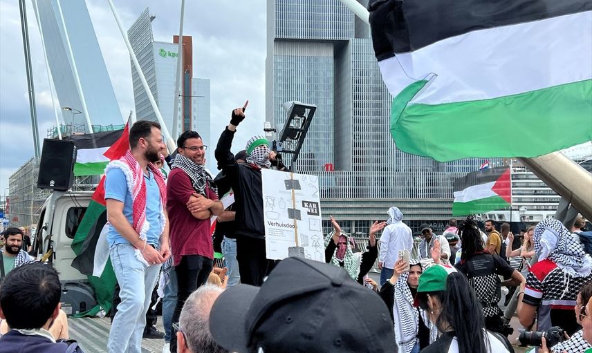 Hollanda'nın Rotterdam kentinde binlerce kişi, Filistin'e destek vermek amacıyla Schouwburg Meydanı'nda bir araya geldi.
