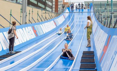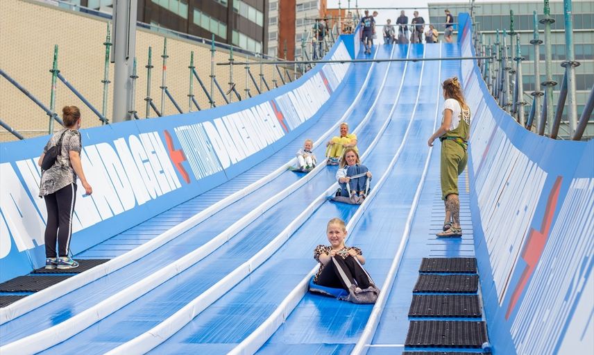 Hollanda'nın Rotterdam kentinde, Rotterdamse Dakendagen Vakfı bu yıl 'Açık Çatı Günleri' etkinliğinin onuncusunu düzenledi. Maritiem Müzesi'nin çatısına, etkinlik kapsamında kurulan seyyar merdivenle çıkan ziyaretçiler, hem manzarayı seyretti hem de dev kaydıraktan kayarak keyifli anlar yaşadı.