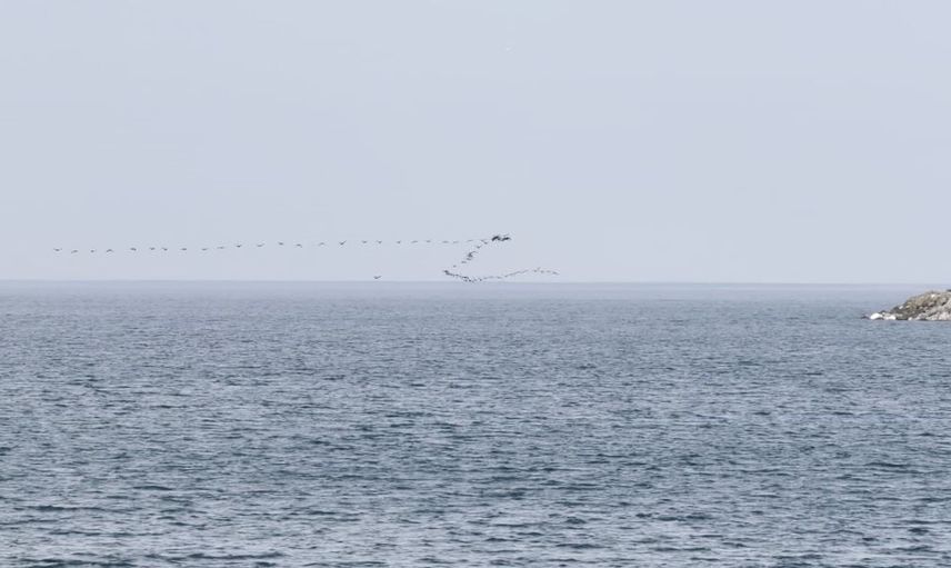 Artvin'in Hopa ilçesinde kaydedilen görüntüler, Karadeniz kıyı hattını kullanan göçmen kuşların yoğun hareketliliğini ortaya koydu. Hopa açıklarında deniz yüzeyine yakın ve sürüler halinde gözlemlenen bu hareketlilik, görsel olarak senkronize uçuş örnekleri oluşturdu.