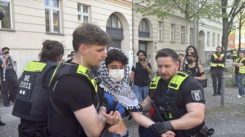 Berlin'deki Humboldt Üniversitesinde öğrenciler, Filistin'e destek amacıyla protesto gösterisi düzenledi.