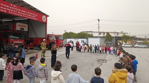 Hatay Büyükşehir Belediyesi İtfaiye Dairesi, İskenderun Hürriyet İlkokulu öğrencilerine itfaiyenin görevleri, müdahale yöntemleri ve acil durum davranışları hakkında eğitim verdi.