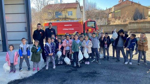 Konya Hüyük'te, İlçe Milli Eğitim Müdürlüğü koordinasyonunda tüm 1. sınıf öğrencilerine yönelik 'İtfaiye ve Yangın Güvenliği Eğitimi' düzenlendi.