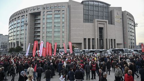 İBB Başkanı Ekrem İmamoğlu, iki ayrı soruşturma kapsamında ifadesinin alınması için İstanbul Adliyesi'ne geldi.